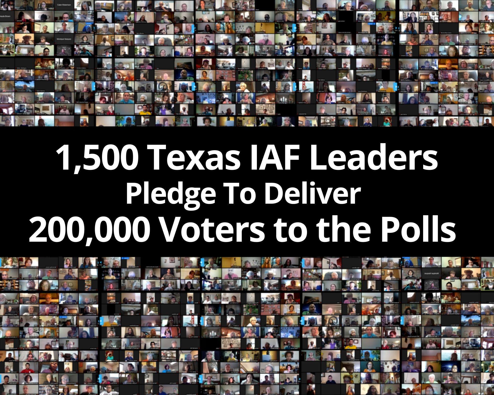 Exceeding their turnout goal by 50%, more than 1,500 leaders from Texas IAF organizations assembled online and in (socially distanced) watch parties to launch a Get Out The Vote drive, pledging to deliver 200,000 voters this fall to support a nonpartisan agenda for change.